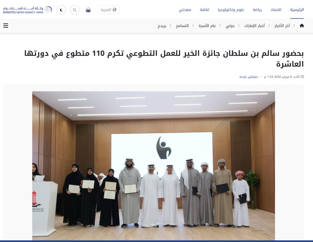 بحضور سالم بن سلطان جائزة الخير للعمل التطوعي تكرم 110 متطوع في دورتها العاشرة