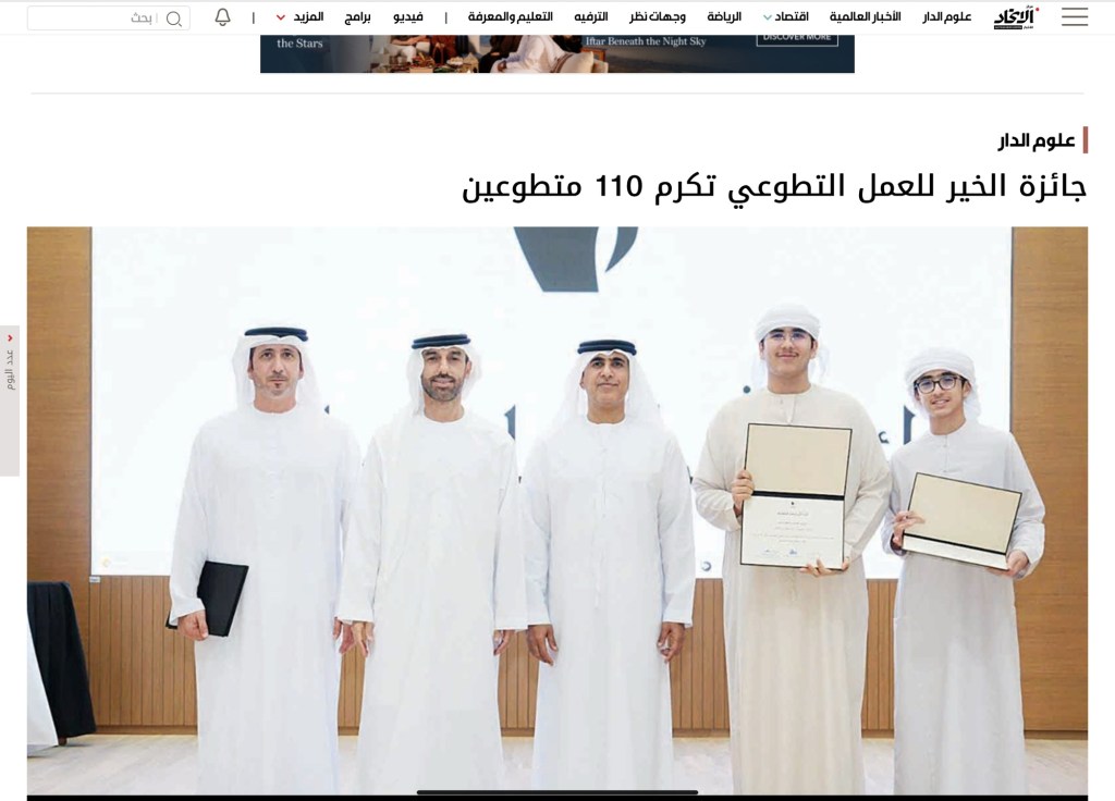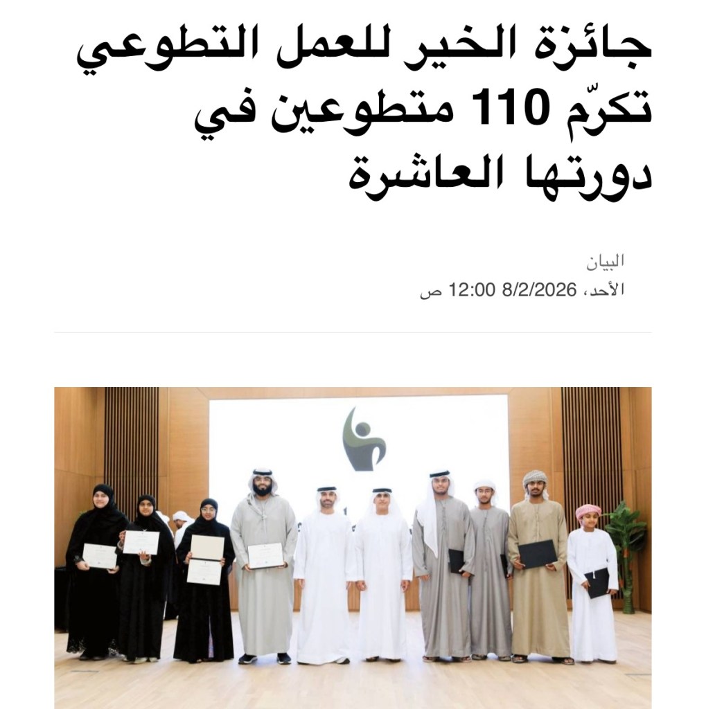 جائزة الخير للعمل التطوعي تكرم 75 متطوعًا في دورتها التاسعة بحتا